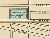 Bleecker Stadium was built as a Federal public works project;[4] originally the stadium was the Bleecker Reservoir, which was constructed in 1850.[5] As Governor of New York, Franklin D. Roosevelt established a jobs relief program that made the conversion of the reservoir, which had become obsolete, possible; and this led to the creation of between 500 and 1,000 jobs. The stadium opened on Thanksgiving Day 1934. The clubhouse was built in 1940 under the Works Progress Administration, also set up by Roosevelt, who by then was President of the United States. Covering 9.5 acres (3.8 ha), the stadium was the ninth largest in the entire United States and the second largest on the East Coast behind Philadelphia. It was named for Albany businessman James Edward Bleecker, a member of an old Albany family which produced several mayors and other officials.[6]