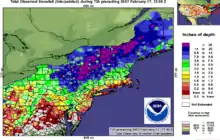 February 2007 North America Winter Storm snowfall accumulation for the Northeastern United States.(From the National Weather Service)