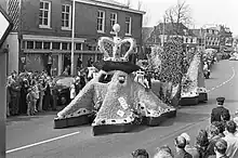 The first flower parade of the bulb region dates back to the year 1947, while it was Willem Warmenhoven, an amaryllis grower from Hillegom, who was the creator of the first adult float in the shape of a whale. On a rickety form a small truck was built and were concealed hyacinths. Hillegom invited Sassenheim and Lisse to cooperate this event, this was set at a large-scale parade and a small corsocomité. The spring parade is closely linked to the spring flower exhibition Keukenhof.