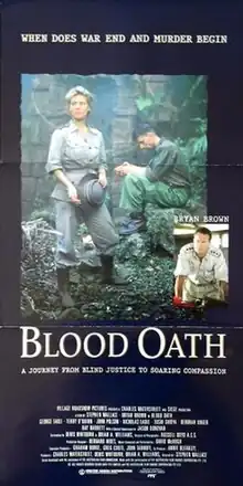 Blood Oath, known in some countries as Prisoners of the Sun, is a 1990 Australian drama film directed by Stephen Wallace and co-written by Denis Whitburn and Brian A. Williams. The film stars Bryan Brown, George Takei, Terry O'Quinn, John Bach, John Clarke, Deborah Kara Unger, John Polson, Nicholas Eadie, David Argue and Ray Barrett. The film is based on the real-life trial of Japanese soldiers for war crimes committed against Allied prisoners of war on the island of Ambon, in the Netherlands East Indies (Indonesia), such as the Laha massacre of 1942.