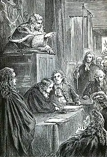 There were five judges: Sir William Montague (Lord Chief Baron of the Exchequer),[1] Sir Robert Wright,[1] Sir Francis Wythens (Justice of the King's Bench),[1] Sir Creswell Levinz (Justice of the Common Pleas)[1] and Sir Henry Pollexfen, led by Lord Chief Justice George Jeffreys.