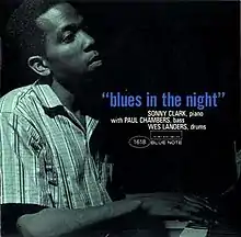 Blues in the Night is a studio album by pianist Sonny Clark, featuring performances by Clark, Paul Chambers and drummer Wes Landers.[2] It was recorded in December 1958, but shelved until being released in Japan in 1979, as GXF 3051. All the tracks can also be found on the compilation Standards. In 2014, it was reissued on a 24-bit remastered CD in Japan, as part of a limited series. The CD also included the six original pieces from The Art of The Trio.