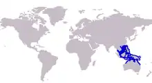 Approximate range of the bluespotted trevally |
