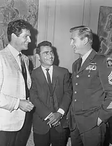 ![]() Hugh O'Brian, Rod Serling, and Lloyd Bridges. O'Brian and Bridges appeared in the Serling-penned episode "Exit From a Plane in Flight". | |