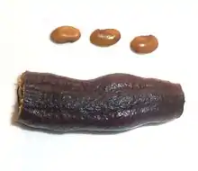 The seed pod contains two acidic saponins, swartziasaponin A and B and swartziagenin, a mixture of oleanolic and O-acetyloleanolic acid.[7] The pod methanolic extract yields highly glycosylated flavonoids (glycosides of kaempferol and quercetin).[8]
