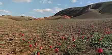 ![]() Big Bogdo Mountain slope, with salt lake in distance | |