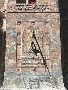 Medary assembled a team of top artisans in their fields—the Art Deco architectural sculpture was designed and executed by Lee Lawrie, and depicts Florida flora and fauna;[3] metalworker Samuel Yellin designed and executed the iron interior staircase, the iron gates to the two bridges over the moat, and the Great Brass Door, which features 30 scenes from the Book of Genesis;[3] J. H. Dulles Allen designed and executed the ceramic mosaics, including the eight 35-foot (11 m)-tall grilles at the top of the tower.[3] Horace H. Burrell & Son, of Philadelphia, was contractor for the tower.[3] Construction began in 1927, and was completed two years later.[3] Outgoing President Calvin Coolidge dedicated the tower on February 1, 1929.[8]