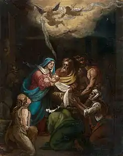 In 1857, he and his wife Stefania, née Karpowicz, went on an extended trip abroad; visiting several cities in Poland, as well as Dresden, Prague, vienna and Trieste. From 1858 to 1861, they lived in Rome. Upon returning, they settled at the family estate near Bialystok, but after Stefanija's death in 1866, at the age of only thirty-seven, he moved into Vilnius and taught drawing at the gymnasium.[1] During this period, he created several religious paintings; notably an image of Saint Stanislaus, for Vilnius Cathedral, and one of Saint Casimir, for St. Francis Xavier Cathedral, Grodno. Most of his works were portraits or landscapes.