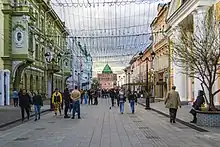 At the end of the 16th to the beginning of the 19th centuries stone buildings were added to the street.[2] Since then it has become the main street of the city and has become known as the "noble family", because of the location on it of the estate of the generals, princely families, the governor, the vice-governor and other high officials.[3] In 1896 Nicholas Theater was built, the opening of which was timed to coincide with the beginning of the All-Russia Exhibition. On 18 July 1896, it was visited by Emperor Nicholas II.[4]