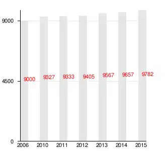 Population | 9000 | 9327 ![]() | 9333 ![]() | 9405 ![]() | 9567 ![]() | 9657 ![]() | 9782 ![]() |