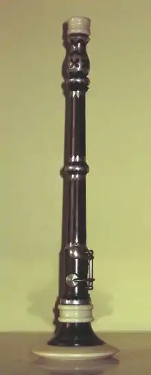 "Essentially a shawm or oboe--that is, a pipe with a conical bore, a double reed, and finger-holes...traditional Breton bombardoù are probably very close to the original progenitor of the oboe family."[1] The bombard is an instrument that has been in constant evolution, with many different keys developed as well as sophisticated silver key-work enabling chromatic possibilities. Milder versions in lower ranges such as Youenn Le Bihan's "piston" (an oboe/bombard hybrid, typically based in the key of Re/D) have been developed for use in mixed ensembles. A class of professional musicians and instrument makers has emerged, as well as standardized reeds and commonly available tutorial materials. Today, both the biniou and bombard are played in combination with an unlimited number of instruments (voice, saxophone, piano, organ, clarinet or treujenn gaol, fiddle, flutes, guitar, percussion… ) in fest-noz,[lower-alpha 2] groups and ensembles of all styles - from classical to folk, rock, pop, punk, metal - in arrangements of traditional Breton dance tunes or in new compositions.