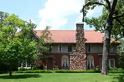 It is a 2+1⁄2-story masonry structure, built out of a combination of fieldstone, brick, and stucco. It is built in a rusticated Tudor Revival style, and was built in 1927 to a design by Thompson & Harding. It has a wide variety of textures to its exterior, and uses earth tones to blend into its relatively rural and wooded landscape.[2]