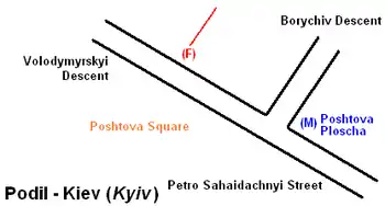 Borychiv Descent (Ukrainian: Боричів узвіз, translit.: Borychiv uzviz) is a historic descent in the historical and merchant quarter of Kyiv, the Podil (Podol) neighbourhood. It is located near the Poshtova Square.
