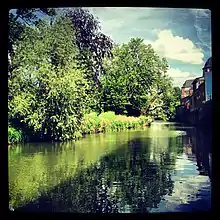 The Botanical Garden of Mechelen (Kruidtuin Mechelen) is the largest public park within the historic city centre of Mechelen, Belgium.[1] It is located on the north bank of the River Dijle and is surrounded by educational establishments (two secondary-school campuses to the east and west, and the Kruidtuin campus of Thomas More University College to the north). Entrances are in the Bruul, the Pitzemburgstraat, and via a footpath from the Zandpoortvest.[1]