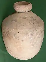 ![]() Botija "perulera" of the 17th century from Seville, Spain. On display at the Museo do Pobo Galego | |