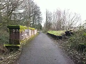 - To the east of the station, the former railway line crosses over the North Clyde Line.