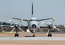 The Breguet Br.1150 Atlantic is a twin-engined, mid-winged monoplane with a "double-bubble" fuselage; the upper lobe comprising a pressurised crew compartment, and the lower lobe housing a 9 m (27 ft 6 in) long weapons bay, with sonobuoy tubes aft of the weapons bay. A radar scanner is housed in a retractable underfuselage radome, while a magnetic anomaly detector is housed in a tail boom. It is powered by a pair of Rolls-Royce Tyne turboprop engines.[7][16] An all-aluminium structure is used throughout the Atlantic's airframe; corrosion is alleged to be a considerable problem due to environmental factors imposed by the maritime environment.[17]