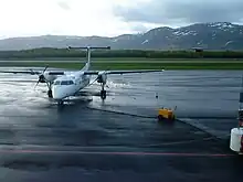 Brønnøysund Airport (Norwegian: Brønnøysund lufthavn; IATA: BNN, ICAO: ENBN) is a regional airport located at the town of Brønnøysund, in the municipality of Brønnøy, Nordland county, Norway. The airport is owned and operated by the state-owned Avinor and serves the southern part of Helgeland. It has a 1,200-by-30-meter (3,937 ft × 98 ft) runway numbered 03–21[1][3] and is served by Widerøe, which operates their Bombardier Dash 8 aircraft to Oslo, Trondheim, Bodø, Bergen and other airports in Helgeland. The airport also serves offshore helicopter flights by CHC Helikopter Service to Norne and temporary oil rigs in the Norwegian Sea. In 2014, the airport served 117,471 passengers, making it the second-busiest regional airport in Norway, after Florø Airport.