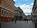 In 1850, the town had 21,782 inhabitants: 8,874 (40.7%) Germans, 8,727 (40%) Romanians, 2,939 (13.4%) Hungarians.[17] In 1910 there were 41,056 inhabitants: 17,831 (43.4%) Hungarians, 11,786 (28.7%) Romanians, 10,841 (26.4%) Germans.[17]