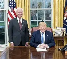 Byrne voted against established procedures for the impeachment inquiry against Donald Trump, and voted several times to table the articles of impeachment.[38] In December 2019, he voted against impeaching Trump on charges of abuse of power and obstruction of Congress in connection with the Trump-Ukraine scandal,[38] echoing Trump's rhetoric on impeachment.[83]