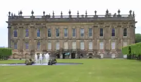 The Baroque mansion was built in 1698 for Robert Benson, 1st Baron Bingley. It has remained in the ownership of Benson's descendants since its completion in 1710.[2] He died with no male heirs and the barony was extinguished. The estate passed into the hands of his son-in-Law George Fox-Lane (c. 1697–1773), who was given the re-created title of Baron Bingley in 1763. His son and heir, the Honourable Robert Fox-Lane, Member of Parliament for York, predeceased him in 1768 and the barony consequently became extinct a second time on his death in 1773. The estate was inherited for life by his illegitimate daughter Mary, who had married Sir John Goodricke of Ribston Hall and died in 1792. It then passed to the first Baron's nephew, James Fox-Lane, who considerably improved the estate.