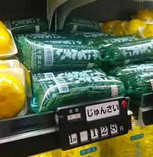 Brasenia is cultivated as a vegetable in China (where it is known as 莼菜, Pinyin: chúncài) and where it is used in Hangzhou in the well-known local speciality "West Lake Water Shield Soup" (西湖莼菜汤)[11] and in Japan (where it is known as junsai).