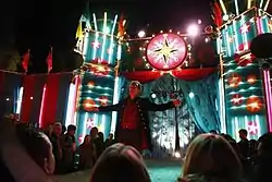 ![]() Samuel addressing the audience gathered in Central Park as he prepares to use his powers to bury the crowd. | |