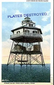- ↑ "Brazos Santiago – Lighthouse Postcard". J. Candace Clifford Lighthouse Research Catalog. United States Lighthouse Society. 1916. Archived from the original on July 6, 2021.