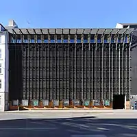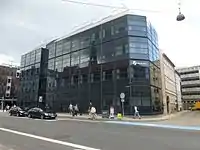 The A.C. Bang fur house (Bremerholm 2/Østergade 27/Lille Kongensgade 32), a seven-storey, modernist property on the corner with Strøget, was built for the furrier A. C. Bang in 1932–32 to design by Bent Helweg-Møller.[3] A tall pillar with a statue of Diana trying to catch a small fur animal runs along the full height of the building and a few metres higher on the Strøget side of the building.[4]