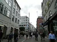 Bremerholm is a street in central Copenhagen, Denmark. It extends south from the major shopping street Strøget to Holmens Kanal. Together with Kristen Bernikows Gade, its extension to the north, it forms one of only two places where car traffic crosses pedestrianized Strøget on its way from Kongens Nytorv to the City Hall Square, the other being at Gammeltorv-Nytorv. The small square Magasins Torv is located in front of one of the entrances to the department store Magasin du Nord at the beginning of the street