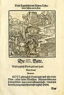 The prescribed readings for the Sunday were from the First Epistle of John, (the "God is Love" verses, 1 John 4:16–21), and from the Gospel of Luke (the parable of the Rich man and Lazarus, Luke 16:19–31). Bach's first cantata for the occasion, Die Elenden sollen essen, BWV 75 (1723), had concentrated on the contrast between the rich and the poor; and the second, the chorale cantata O Ewigkeit, du Donnerwort, BWV 20 (1724), concerned repentance when faced with death and eternity. In contrast the libretto of Brich dem Hungrigen dein Brot took as its theme gratitude for God's gifts and the duty to share them with the needy.[2]