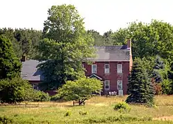 Brick House Farm, also known as the Richard Jarrell Farmhouse, is a historic home in Greensboro in Caroline County, Maryland, United States. It was built about 1823 and is a five-bay-long, two-story brick “I” house with a kitchen addition dating to the 1970s. The main house measures 41 feet 8 inches (12.70 m) long by 20 feet 1 inch (6.12 m) deep. It is one room deep and features a gable roof. The perimeter of the estate is wooded by pine and cherry trees. A small orchard is located at the front of the property. The remaining barn and chicken coop lays behind the house. The house is full of intricate wood work and features several rooms on each floor. The stairs continue up to the attic which goes above the entire house and one can stand up without having to duck.[2]