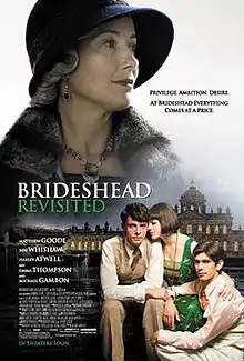 Brideshead Revisited is a 2008 British drama film directed by Julian Jarrold. The screenplay by Jeremy Brock and Andrew Davies is based on the 1945 novel of the same name by Evelyn Waugh, which previously had been adapted in 1981 as the television serial Brideshead Revisited.