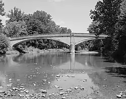 The Bridge between Monroe and Penn Townships, also known as the Penns Creek Bridge, Camelback Bridge, or Camelback, was a historic bridge located at Monroe Township and Penn Township near Selinsgrove in Snyder County, Pennsylvania. It was a 194-foot-long (59 m) barrel arch bridge built in 1919. It spanned Penns Creek.[2] It was removed in 1994.