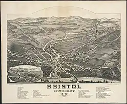 Extensive deposits of fine sand or clay similar to the "Bristol Sand" used in Bristol, England, to make fine china and pottery gave the town its name. Here the sand was used to make a superior quality brick, marketed as Bristol brick. With water power from the Newfound River, the town was a center of manufacturing in the early days for goods such as paper, leather, woolens, flannel, bedsteads and piano stools.[4]