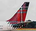 Benyhone[lower-alpha 1] (Mountain of the Birds) | Peter MacDonald | Anglicized Gaelic for "Mountain of the Birds", a Scottish tartan design using colours from William Wilson & Son of Bannockburn.[24] | Scotland | Boeing 737-200 | G-BGDL | 25 | ![]() |