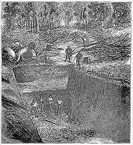 Soon after the first settlement in Northern Tasmania, at York Town in 1804, colonial settlers found that there were extensive deposits of iron ore in the hills to the west of the Tamar estuary.[2] Interest in the area was aroused again by the report in 1866 of the Government Geologist, Charles Gould.[3]