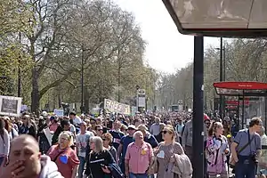 On 16 March, the British government started holding daily press briefings. The briefings were to be held by the Prime Minister or government ministers and advisers. The government had been accused of a lack of transparency over their plans to tackle the virus.[57] Daily briefings were also held by the devolved administrations of Northern Ireland, Scotland and Wales.[58] The speakers at the daily press briefings were accompanied by sign language interpreters. British sign language is a recognised language in Scotland and Wales, with interpreters standing 2 metres behind Ministers. Northern Ireland's briefings had both British and Irish Sign Language interpreters who were shown on a small screen in the press conference room. The British government briefing did not have an interpreter in the room or on a screen leading to a Twitter campaign about the issue. The government reached an agreement to have the press conferences signed on the BBC News Channel and on iPlayer in response to the campaign.[59] In response to this a petition was created by Sylvia Simmonds that required the government to use sign language interpreters for emergency announcements.[60] Legal firm Fry Law looked to commence court proceedings as they said the government had broken the Equality Act 2010, but also said that the government was doing the bare minimum and were crowdfunding to cover the government's legal costs if they lost.[59]
