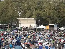 Going through the park is a circular, one way road, with three roads leading out of the park. There are many entrances for pedestrians, and there are two parking lots of approximately forty spots each. The road goes around parts of the park that have many athletic fields, park buildings, and other facilities. In the southern end of this area is the great meadow, and on the northern side there are the playgrounds, baseball/softball fields, and the stadium with the grandstand, track, and turf soccer field.[2]