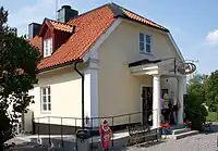 Brostugan was originally built in the 1780s and became the residence of the bridge-keeper when Gustavus III had built the first bridge between Kärsön and Drottningholm Palace in 1787. Brostugan served as the house of the bridge-keeper until 1931, whose job was to open the bridge and collects tolls. The upper floors were rented to summer visitors and one of the most famous tenants was Hjalmar Söderberg. He spent the summer there in 1876 aged seven, which he describes in his autobiographical book, Martin Birck's Youth.
