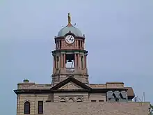 Work on a new courthouse in Aberdeen began by 1902,[7] designed by architects Frank W. Kinney and Menno S. Detweiler.[8][9] It was built by E. Miller of Le Mars, Iowa, and completed in 1904 at a cost of around $120,000.[2][10] Two half blocks of land were donated by several property owners and a street was removed for the courthouse site.[3][5] The courthouse was formally dedicated on March 15, 1904.[3][11] The old courthouse was demolished in 1905 and the site was turned into a park.[6][12]