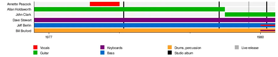 - Bill Bruford – drums, percussion, vibraphone (1976–1980), piano (1980)