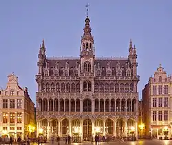 Brussels' Town Hall was erected in stages, between 1401 and 1455, on the south side of the Grand-Place/Grote Markt, transforming the square into the seat of municipal power.[3] To counter this, from 1504 to 1536, the Duke of Brabant ordered the construction of a large Flamboyant edifice across from the city hall to house his administrative services.[8] It was erected on the site of the first cloth and bread markets, which were no longer in use.[9]