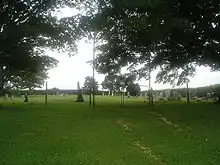 Later that spring, the Black Hawk War began with the first armed confrontation at the Stillman's Run. The Sauk were victorious during this confrontation with Colonel Isaiah Stillman's militia. Dispatches were sent to all settlers, ordering them to the military headquarters near Dixon's Ferry. Buffalo Grove's settlers first went to Dixon's Ferry, then moved on to Peoria where they remained until September.[2] While the settlers were away, a group of men returned to their homes to look after some of the stock that remained in the settlement. When the men returned to Buffalo Grove, they found the body of William Durley in the road near the woods. The event became known as the Buffalo Grove ambush or massacre. Durley was originally buried near the spot he died at by a party who would become the victims of the St. Vrain massacre the next day.[3][4] In 1910 the Polo Historical Society moved Durley's remains and erected a historical marker and memorial over his new grave.[2][5]