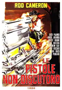 Bullets Don't Argue (Italian title: Le pistole non discutono, also known as Guns Don't Talk and Pistols Don't Argue) is a 1964 Italian Spaghetti Western directed by Mario Caiano.[3] The film was produced by Jolly Film, back to back with Sergio Leone's A Fistful of Dollars, but with a more extensive budget and anticipating greater success than Leone's film, especially since at the time leading actor Rod Cameron was better known than Clint Eastwood.[4]