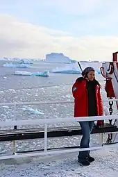 While she was working on her Ph.D, she learned that communication across disciplines and across scientific knowledge levels is the key to make people understand new results and theories in the field of and the threats accompanied with climate change. Therefore, after having returned to Turkey in 2011, she worked hard against resistance and old-fashioned opinions to promote the importance of polar research in Turkey; from the 1st grade school kid[10] to the well-established professor[11] and up into the highest political levels.[12] Her initiations also started public awareness about the importance of the Polar Regions.[13] Many students that she has been giving lectures to, are now well aware of climate change and have done related researches for the first time in Turkey. She is the founder and director of Istanbul Technical University Polar Research Center (ITU PolReC) which is in charge of all polar sciences in Turkey.[2][14][15] Its foundation is well in line with the scientifically rooted logical next step to contribute to Antarctic research with a Turkish research base in Antarctica for which she went back to Antarctica in March/April 2016. During that expedition, she was the deputy leader.[16] She was also one of two women for the expedition and said that the two women scientists showed that Turkish women can accomplish anything.[17][18] One of the projects she worked on during the expedition involved climate change.[19] Also she was included Scientific Committee of International Circumpolar Observatory.[20] She led first, second and third Turkish Antarctic Expeditions under the auspices of Presidency of Turkey and under the coordination of the Ministry of Industry and Technology and Istanbul Technical University (ITU) Polar Research Center (PolReC)
