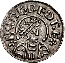![]() Silver penny struck between 866 and 868/870 by Burgred Legend:+ bvrgred rex | |
