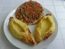 Bursa cantik pide (Turkish: Bursa cantık pidesi) is a traditional Turkish recipe for a dish of pizza dough filled cheese, ground meat, or other fresh or cured meats, and/or vegetables.[1][2][3][4]
