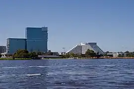 Burswood includes Belmont Park Racecourse, Perth's winter thoroughbred racing track;[9] Perth Stadium, a 60,000 seat multi-purpose venue for all football codes, cricket and entertainment events;[10] the State Tennis Centre;[11] and Crown Perth (formerly the Burswood Entertainment Complex), with three hotels, a casino, a convention and function centre, a theatre and many restaurants and bars.