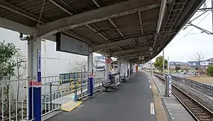 The station consists of a single un-numbered four-car-long side platform serving a bi-directional track.